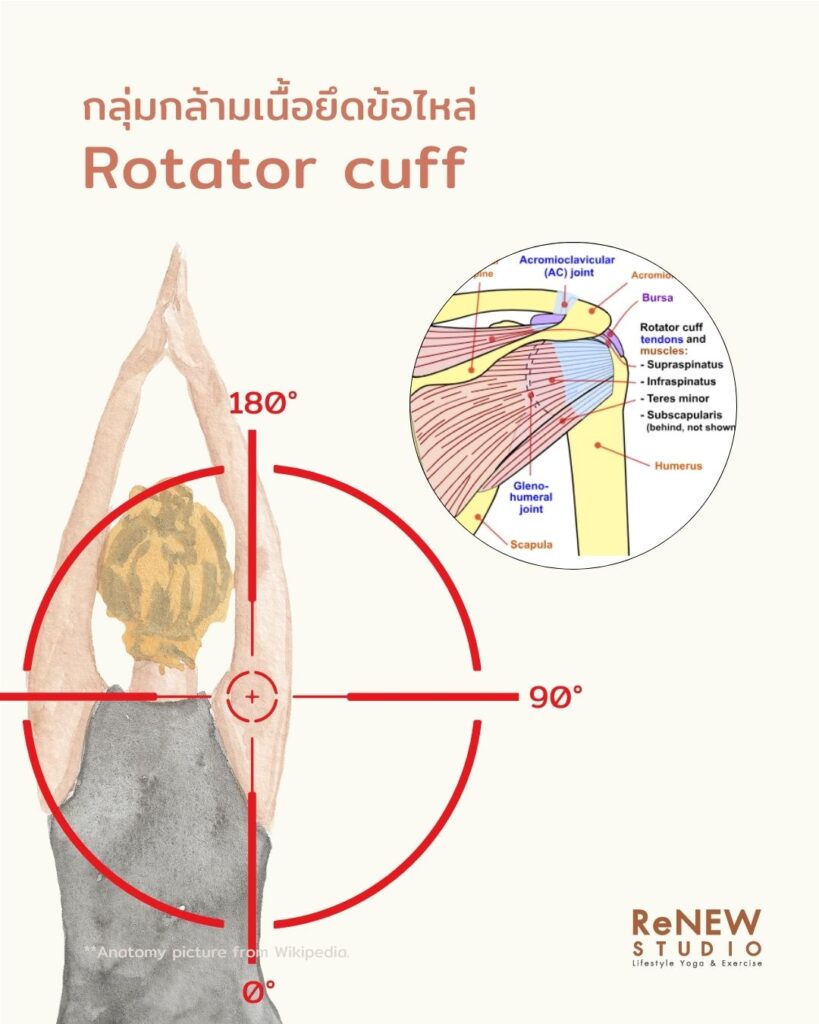เมื่อรู้จัก rotator cuff แล้ว ลองกลับมาสังเกตไหล่ของตัวเองใหม่อีกครั้งตอนที่ยกแขน หรือตอนฝึกโยคะว่า…
