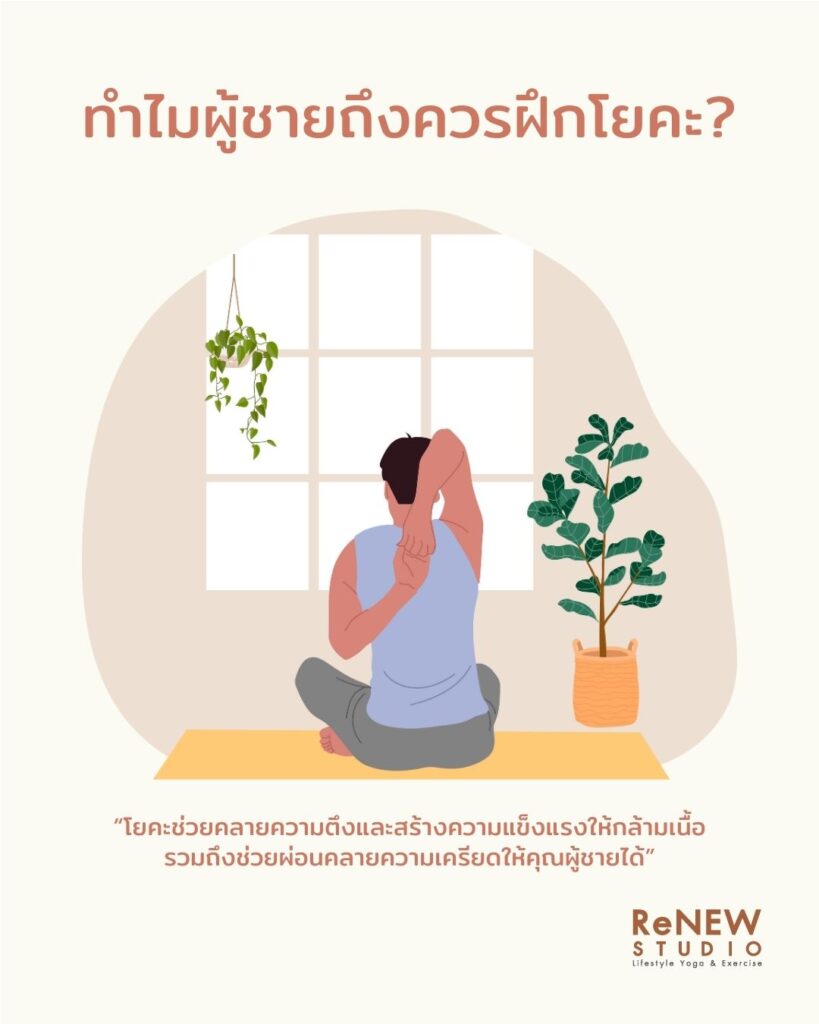 คุณผู้ชายบางคน อาจมีภาพในหัวว่า… โยคะคือการฝึกของผู้หญิง ในเสื้อและกางเกงรัดรูป บนเสื่อโยคะสีสันสวยงาม คุณอาจรู้สึกแปลก ๆ เวลาเข้าคลาสโยคะที่มีแต่ผู้หญิงเต็มห้อง หรือคุณอาจเคยลองแล้ว…แต่รู้สึกว่าร่างกาย ตึงไปหมด เหนื่อยมาก ค้างท่านาน