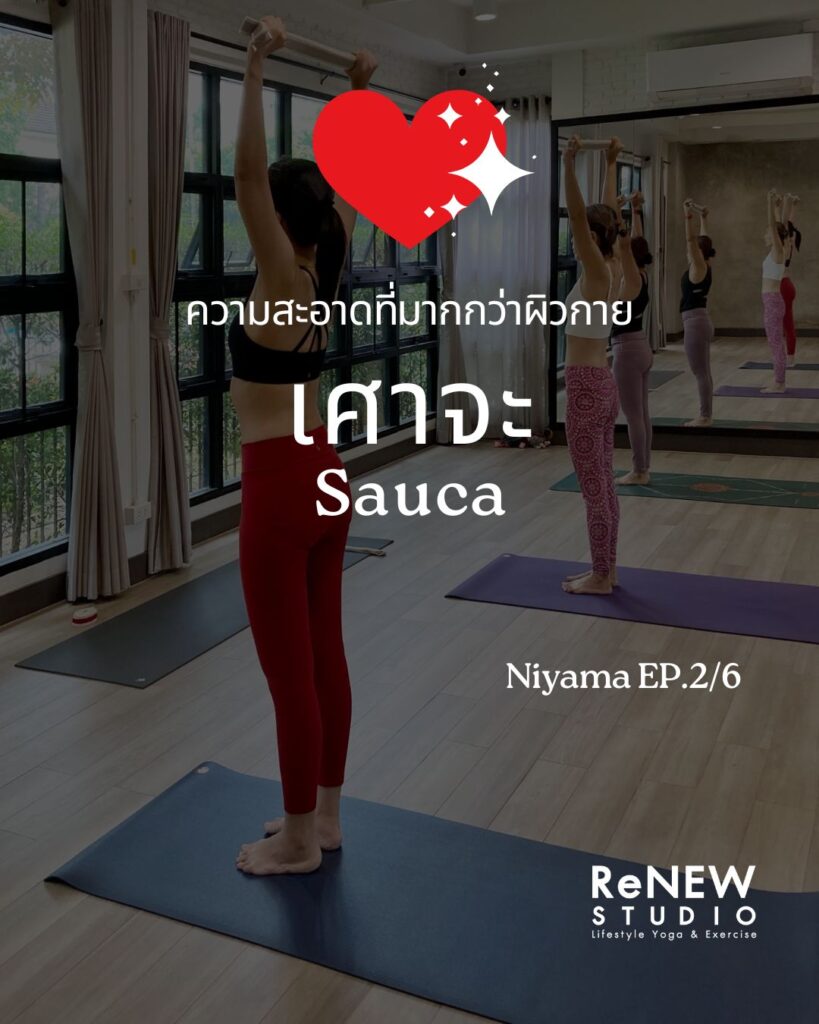 ใน คัมภีร์โยคะสูตร Sauca คือการทำให้ร่างกาย จิตใจ และสิ่งแวดล้อมสะอาด เพื่อเตรียมให้พร้อมสำหรับการฝึกโยคะและการเข้าถึงสมาธิ