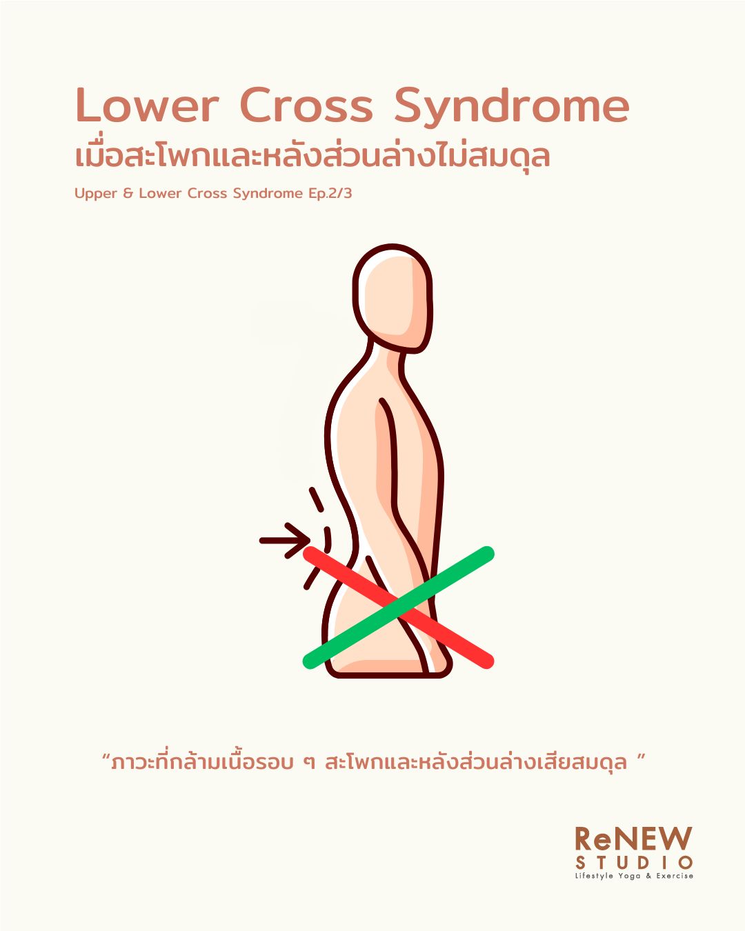 Lower Cross Syndrome เกิดจากการทำงานของกล้ามเนื้อที่ไม่สมดุล บางส่วน ตึงเกินไป ขณะที่บางส่วนกลับ อ่อนแรงเกินไป